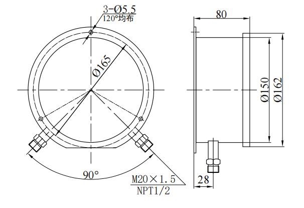 7 . Quando lo strumento è influenzato dalle variazioni di temperatura e l'errore di indicazione aumenta e influisce sull'accuratezza della misurazione, il boss della spina sulla custodia può essere interrotto per rendere comunicare l'interno e l'esterno del caso e la pressione dell'aria è bilanciata.